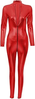 IWEMEK Sexy Combinaison Femme Catsuit Effet Latex, Métallique Combinaison Zippée, Leg Avenue, Jumpsuit, Bodysuit, Dancewear, Déguisement, Effet Mouillé