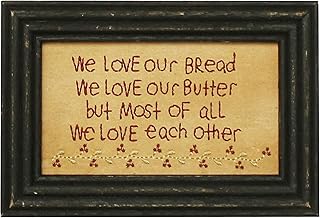 CVHOMEDECO. Primitives Cadre de Broderie Antique à accrocher au Mur, Bois, Coton, We Love Our Bread, We Love Our Butter, But Most of All We Love Each Other, 22,9 x 15,2 cm