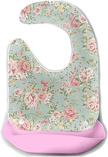 Bavoirs pour bébés Grand classique rose Vintage Motif de fleurs sur un tablier d'alimentation en silicone détachable en silicone Serviette pour souris Nourrir un bébé bavoir bavoir bavoir bavoir bavo
