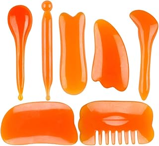 Lurrose Outils de Massage de Grattage de Gua Sha Outil D'acupuncture de Pierre de Gua Sha de Jade Naturel pour Le Traitement Du Point de Déclenchement de La Thérapie Spa (Orange)