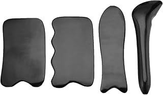 Jovivi Lot de 4PCS Hand Made Gua Sha Corne de Bœuf Noir Buffalo Horn Grattage Massage Plaque Conseil Outil pour Le Traitement Point Graston Spa Acupuncture Therapie sur Pied Visage Bras