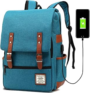 Junlion Business Unisexe Ordinateur Portable Sac À Dos Collège Étudiant École Sac À Dos Voyage Sac À Dos avec USB Port De Charge Bleu