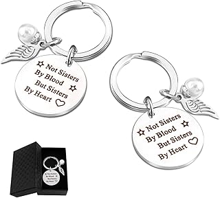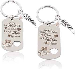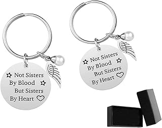 2 PCS Bons Amis Porte-clés, Porte-clés en Acier Inoxydable Gravé Pas Sœur par Le Sang mais Sœur par Le Cœur Porte-clés Soeur Cadeaux d'amitié pour Le Meilleur ami, Soeur, camarades de Classe
