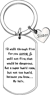 Porte-clés en forme de plaque d'identité avec inscription « Sister Gifts from Sister » - Cadeau amusant pour sœur ou sœur - « I'd Walk Through Fire » - 6