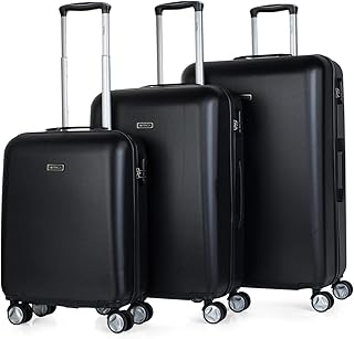 Set de 3 valises Trolley 50/60 / 70 cm ABS. Rigides, résistantes et légères. Manche télescopique. 2 anses, 4 Roues Doubles. Cadenas intégré. Petite Valise Cabine T58000, Color Noir