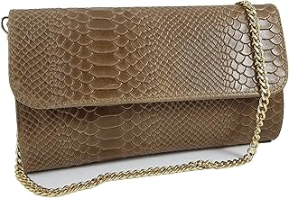 Pochette en cuir véritable pour femme - Motif métallique - 25 x 15 cm - Marron - Taupe Snake.,