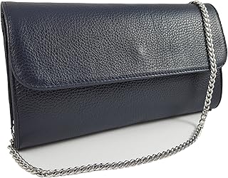 Pochette en cuir véritable pour femme - Motif métallique - 25 x 15 cm - Bleu - bleu foncé,