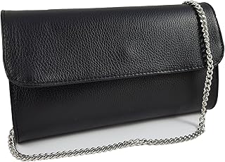 Pochette en cuir véritable pour femme - Motif métallique - 25 x 15 cm - Noir - Noir ,