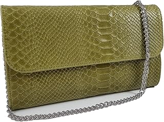 Pochette en cuir véritable pour femme - Motif métallique - 25 x 15 cm - - Oliv Snake.,