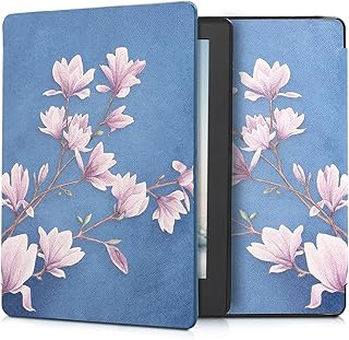 kwmobile Étui liseuse Compatible avec Amazon Kindle Paperwhite (10. Gen - 2018) - Housse avec Rabat magnétique en Simili Cuir - Magnolias Taupe-Blanc-Bleu-Gris
