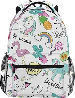 Jeansame Sac à dos d'école, sac d'ordinateur portable, sacs de voyage pour enfants, garçons, filles, femmes, hommes, licorne, chat, sirène, cactus, flamant rose