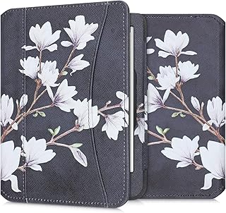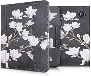 kwmobile Coque Liseuse Compatible avec Kobo Nia - Étui de Protection à Rabat en Simili Cuir - Magnolias Taupe-Blanc-Gris foncé
