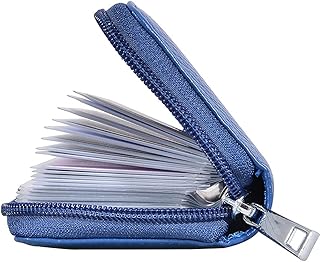 Porte Cartes de Crédit Cuir RFID - Cartes en Accordéon Cuir Portefeuille avec 20 Fentes pour Cartes pour Les Femmes Homme, Bleu