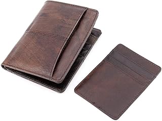2 pièces Portefeuille de Blocage RFID, Portefeuille en Cuir de Vachette pour Hommes, Sac à Main en Cuir véritable rétro à Deux Volets Mince Minimaliste, Porte-Cartes de crédit