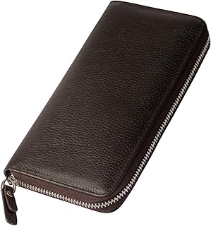 Portefeuille en cuir véritable avec blocage RFID longue porte-monnaie minimaliste porte-cartes pour femme cartes de crédit passeport voyage argent poche marron