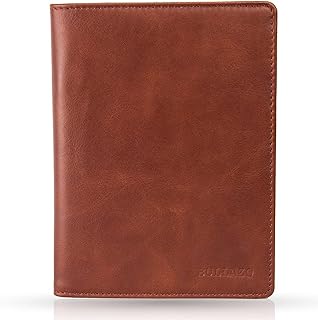 Plano Mini véritable Couverture en Cuir véritable Passeport I étui avec Fentes pour Cartes de crédit et Blocage RFID | Portefeuille Organisateur de Voyage pour Les Hommes Femmes I Brun