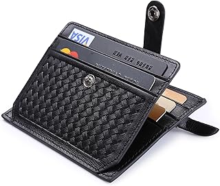 Porte Cartes de Crédit, Noir Bifold Portefeuille Cuir Véritable, RFID NFC Blocage avec Poche à Monnaie avec Bouton Couvert pour Hommes