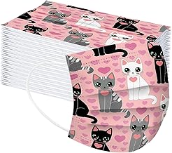WELCO 50PC Enfant Chat imprimé Mas-ques Jetable avec Brosse Cache-Oreilles Mas-Que Bouche Visage Coton,Tissu Non Lavable,Non Réutilisable pour Cyclisme Camping Voyage Bandeau Bavoir Masque Nasal