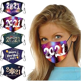Auifor 1/5PCS ???????????????????????? Tissu Lavable Adulte Reutilisable Bonne année 2021 Imprimé Anti Pollution Anti-Buée Visage Respiratoire Drole Halloween Bandana Femmes Hommes Noël Faveur Fête(E08,1PC)