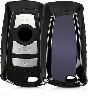 kwmobile Accessoire Clé de Voiture Compatible avec BMW (Keyless Go Uniquement) 3-Bouton - Coque de Protection en Silicone - Noir Haute Brillance