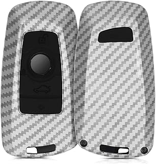 kwmobile Accessoire Clé de Voiture Compatible avec BMW (Keyless Go Uniquement) 3-Bouton - Coque de Protection en Plastique Rigide Carbone argenté
