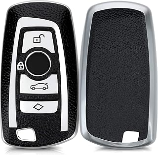 kwmobile Accessoire Clef de Voiture Compatible avec BMW (Keyless Go Uniquement) 3-Bouton - Coque de Protection en Silicone argenté-Noir